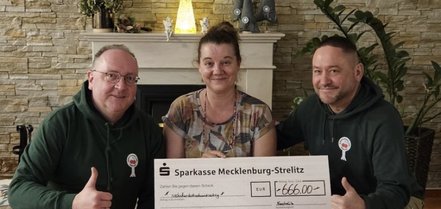 Wie bereits im vergangenen Jahr, waren wir von eurer Resonanz überwältigt und konnten eine stolze Summe zusammentragen. Ein wenig durch den Verein aufgerundet, übergaben wir kurz vor Weihnachten 666 € an Frau Bendrich im Neustrelitzer Hospiz. Überaus dankbar nahm man die Summe dort an.